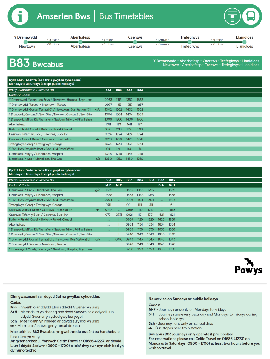 If you would like to book the service, please call 01686 412231 (Option 1) Monday - Saturday between 9AM and 5PM. Bookings for Monday morning should be made on Saturday by 5PM at the latest.