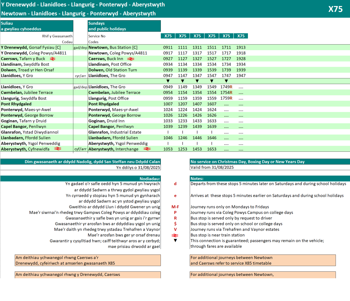 Aberystwyth - Ponterwyd - Llangurig - Llanidloes - Y Drenewydd