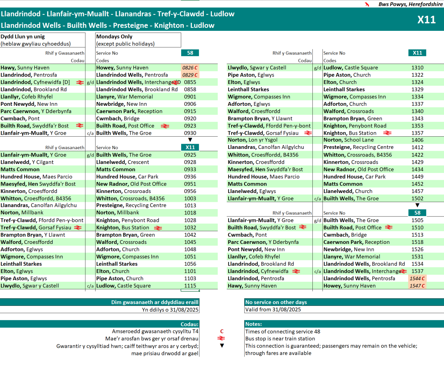 Llandrindod - Llanfair-ym-Muallt - Llanandras - Tref-y-Clawdd - Ludlow