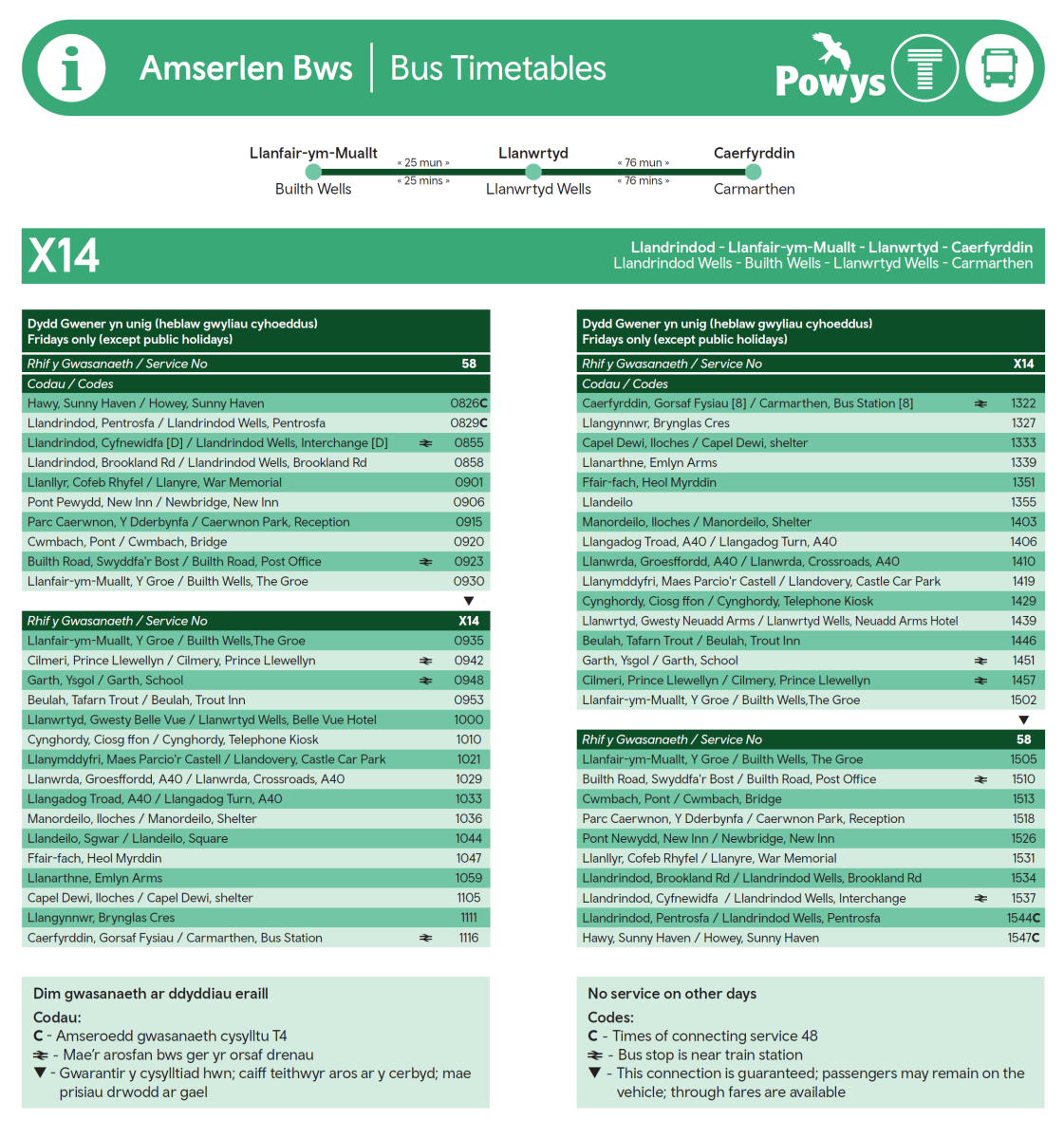 (Use in conjunction with the 58 for Llandrindod Wells to Builth Wells part of Journey)