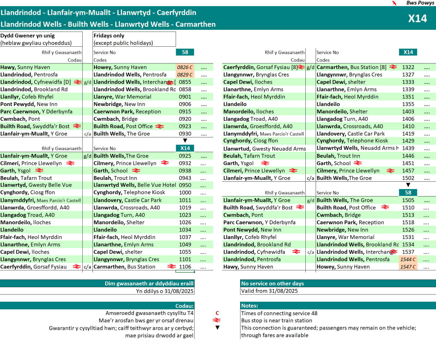 Llandrindod - Llanfair-ym-Muallt - Llanwrtyd - Caerfyrddin