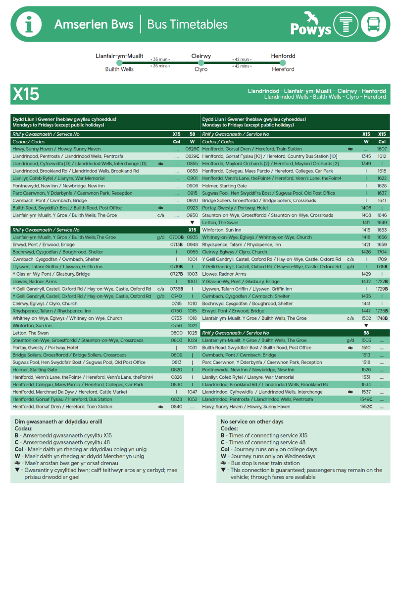 Llandrindod - Llanfair-ym-Muallt - Cleirwy - Henfordd