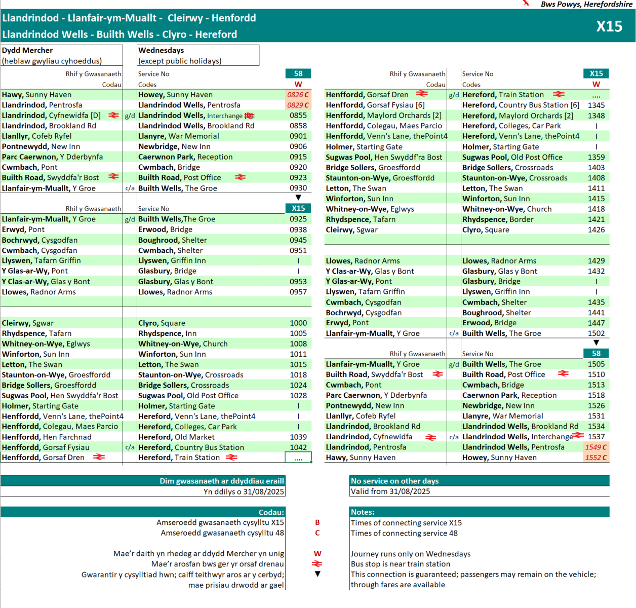 X15 Timetable (Market Days - Wednesday's Only)