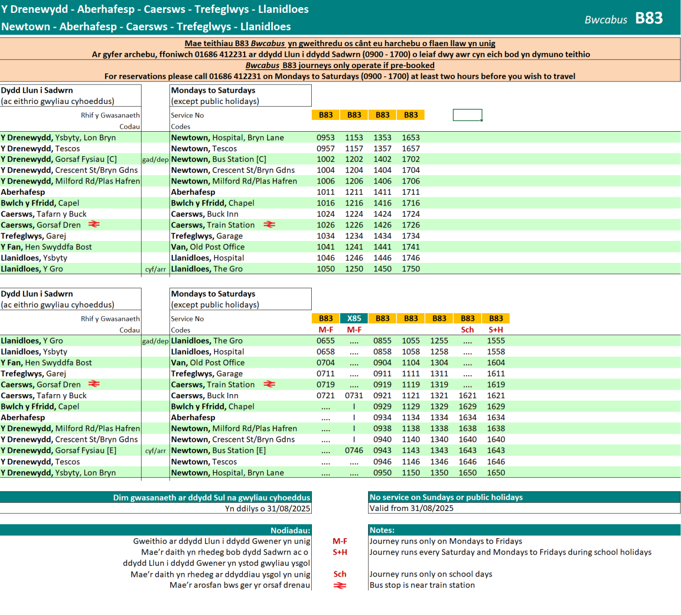 If you would like to book the service, please call 01686 412231 (Option 1) Monday - Saturday between 9AM and 5PM. Bookings for Monday morning should be made on Saturday by 5PM at the latest.
