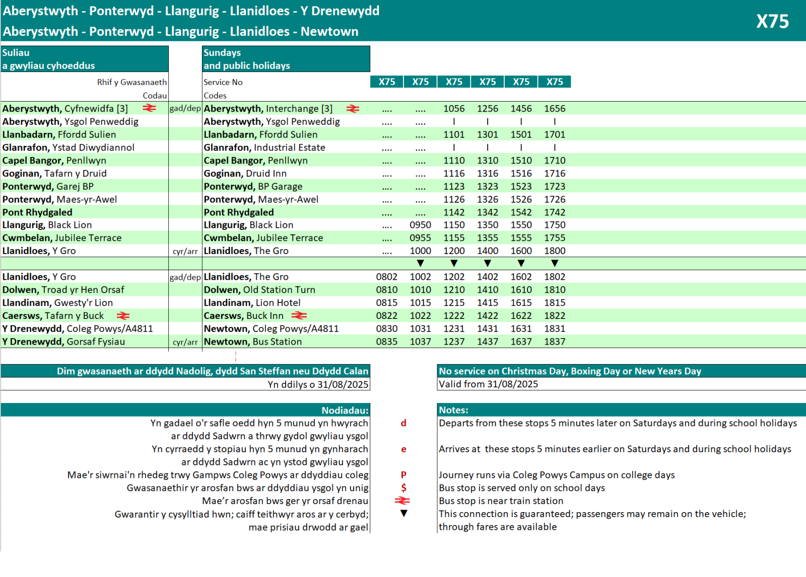 Aberystwyth - Ponterwyd - Llangurig - Llanidloes - Y Drenewydd
