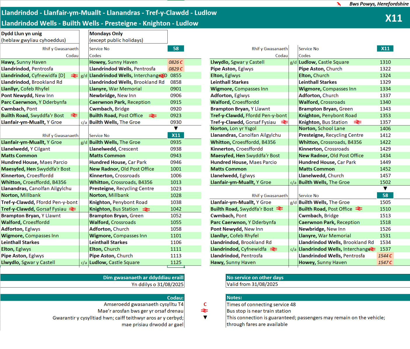 Llandrindod - Llanfair-ym-Muallt - Llanandras - Tref-y-Clawdd - Ludlow