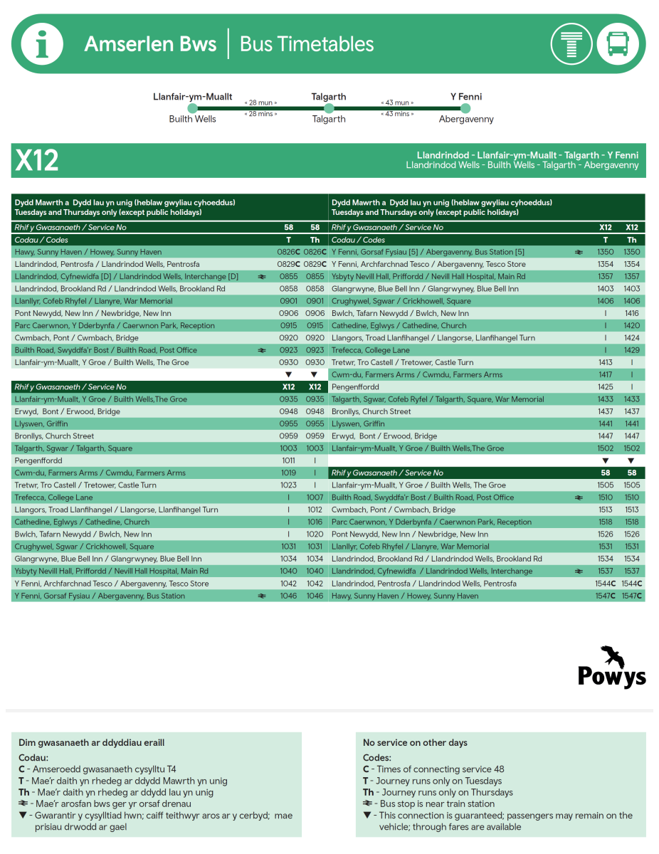 (Use in conjunction with the 58 for Llandrindod Wells to Builth Wells part of Journey)