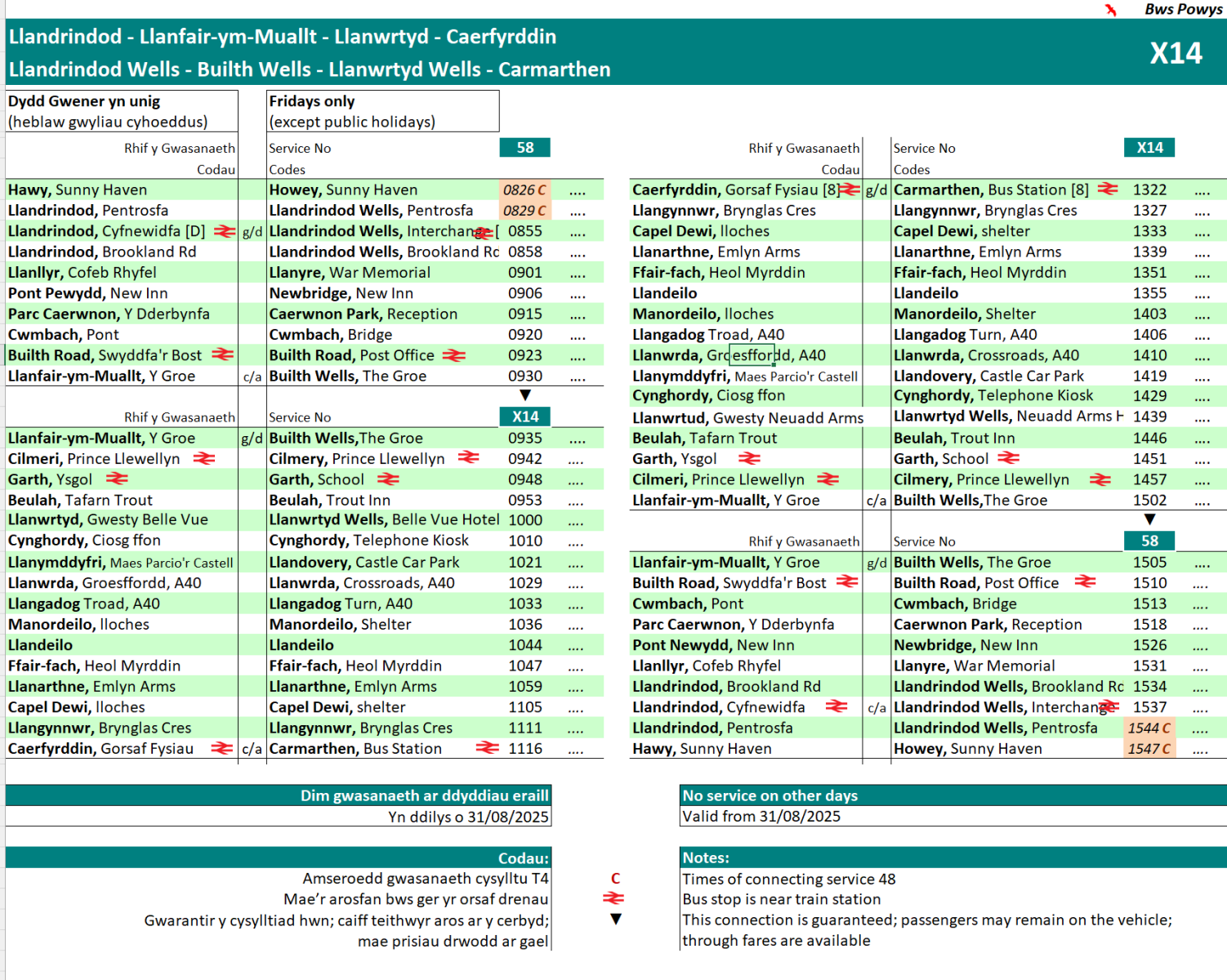Llandrindod - Llanfair-ym-Muallt - Llanwrtyd - Caerfyrddin